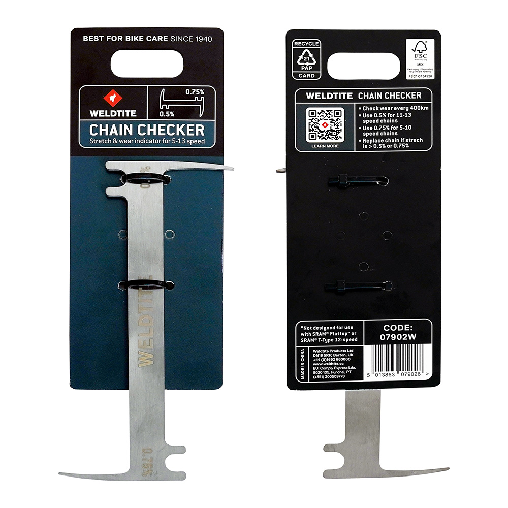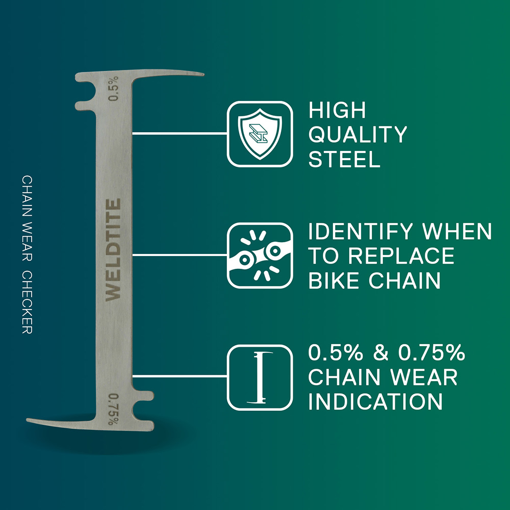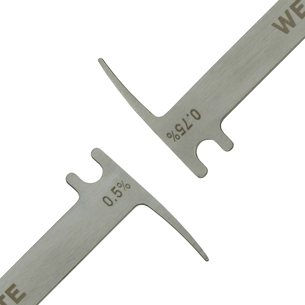 Precision-engineered chain wear tool designed to measure chain stretch at critical service thresholds of 0.5% and 0.75%.