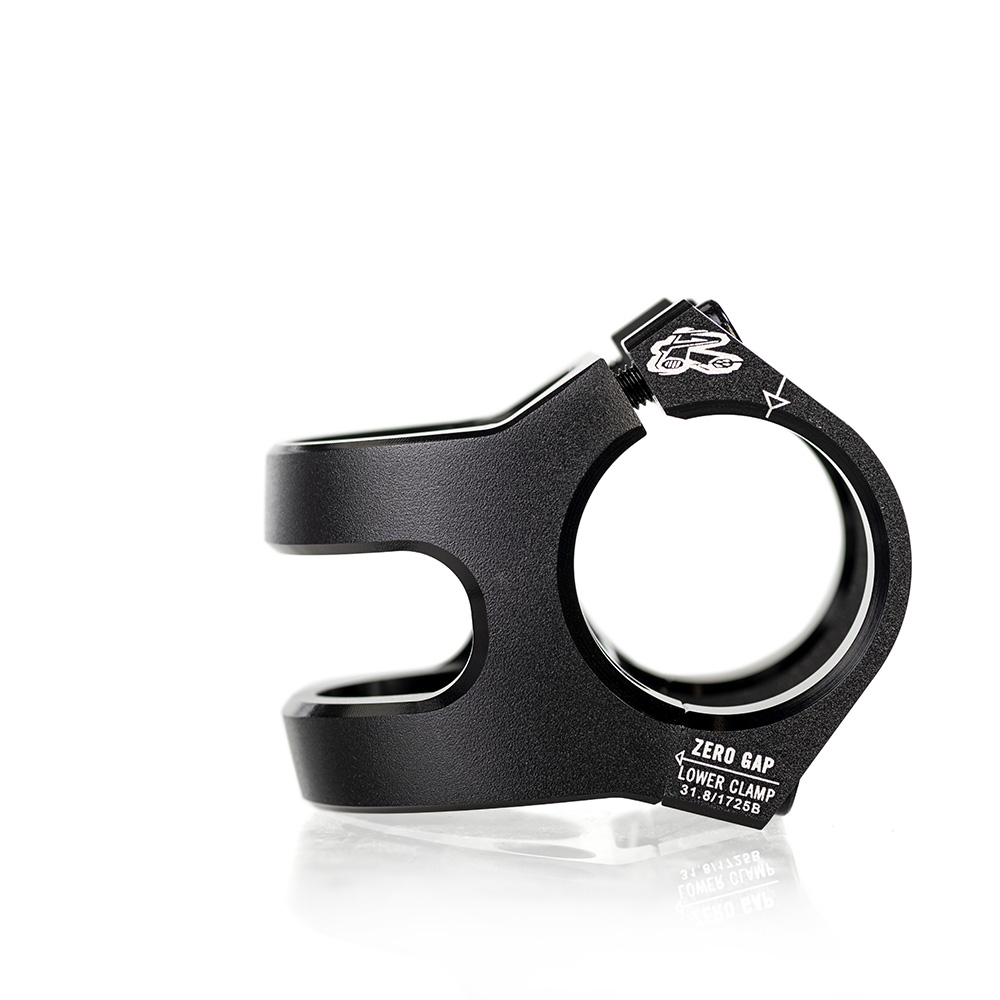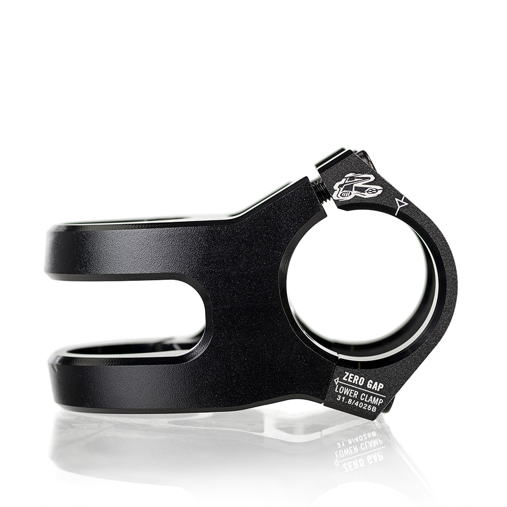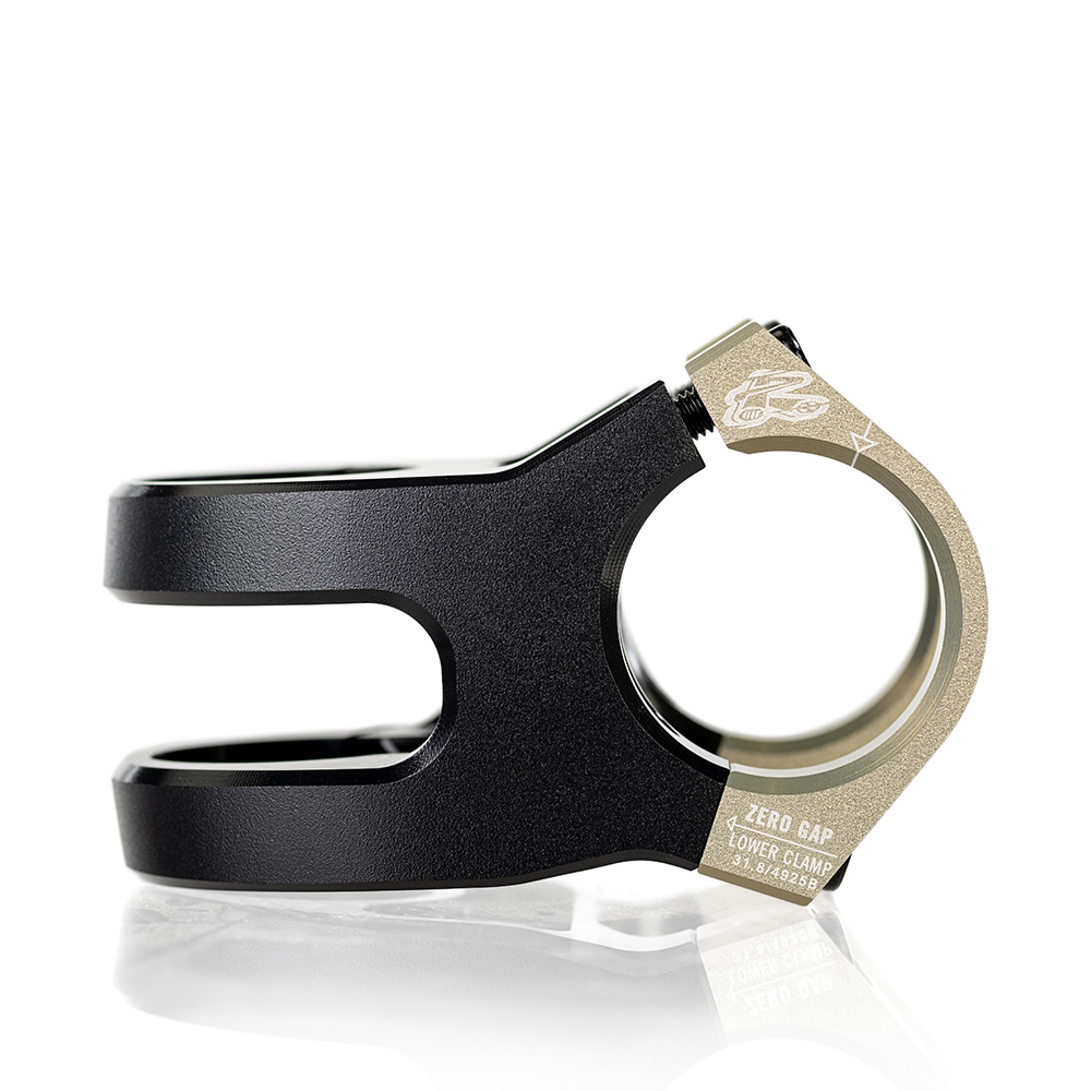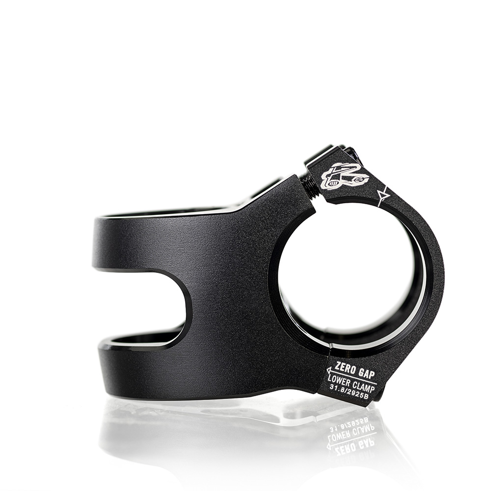 - Angled, side-mounted steerer clamp for improved clamping performance