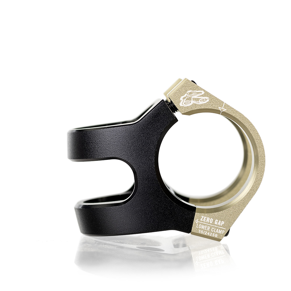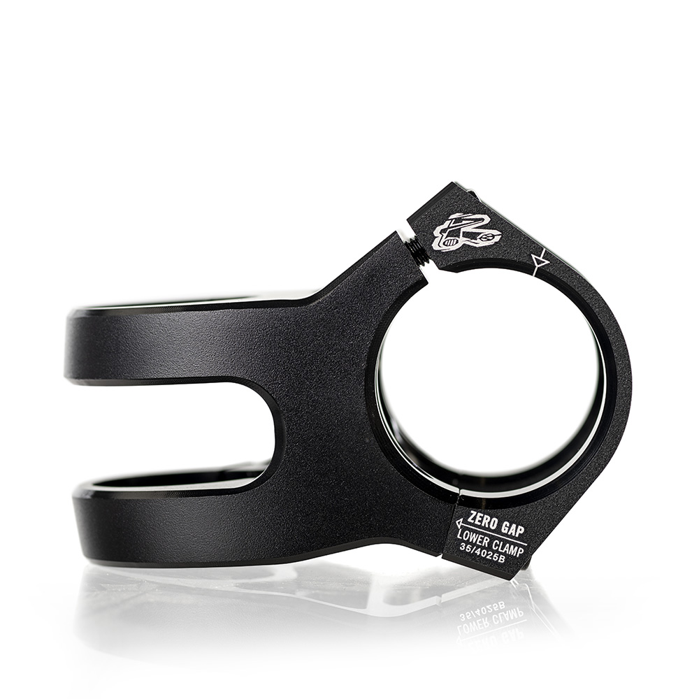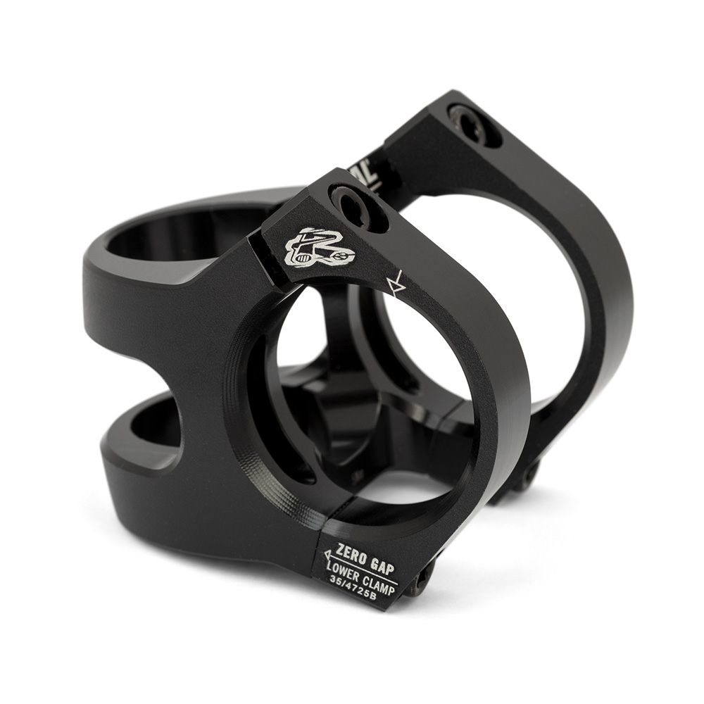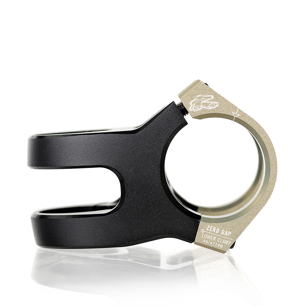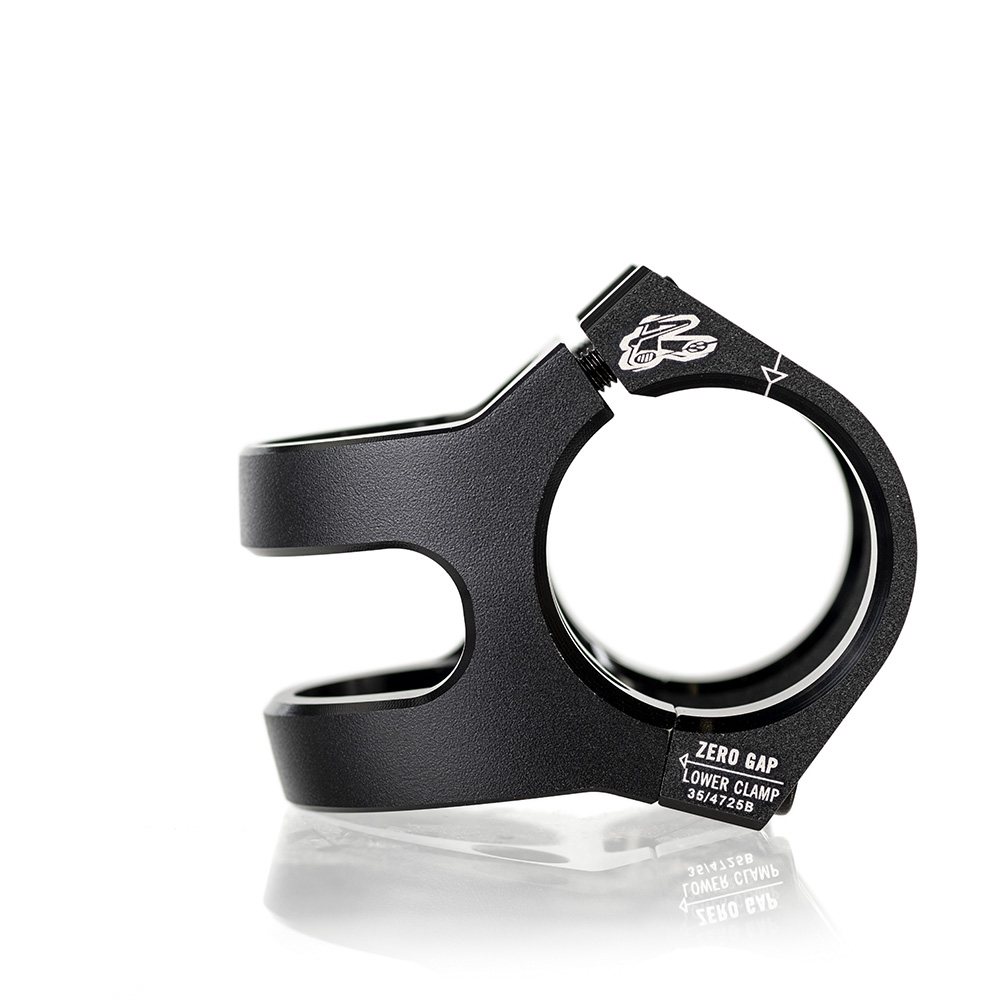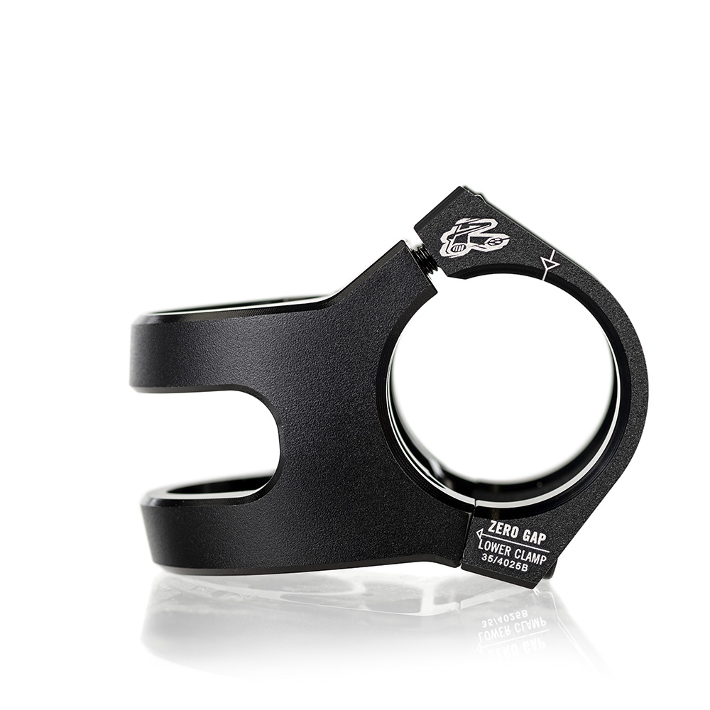 - Angled, side-mounted steerer clamp for improved clamping performance