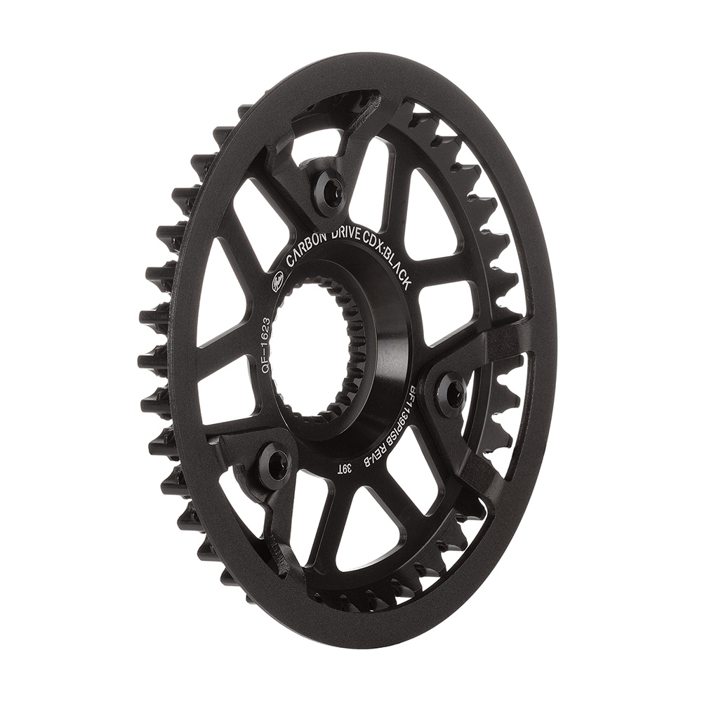 The Gates CDX Center Track sprocket for Pinion transmissions can be mounted directly on the Pinion gearbox thanks to its special mount.