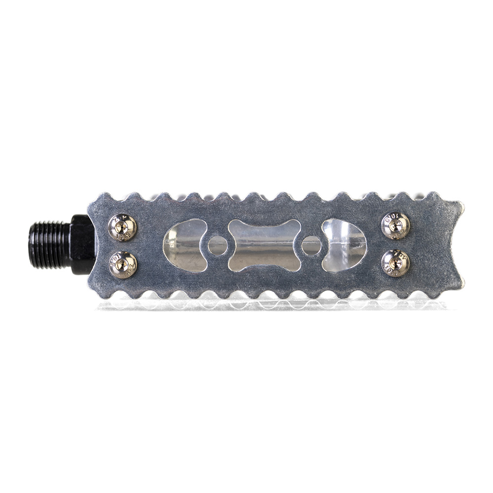 The double-sided serrated edge cages are well-suited for use with regular sole shoes and also a great fit for use with classic type toe-clips and straps.